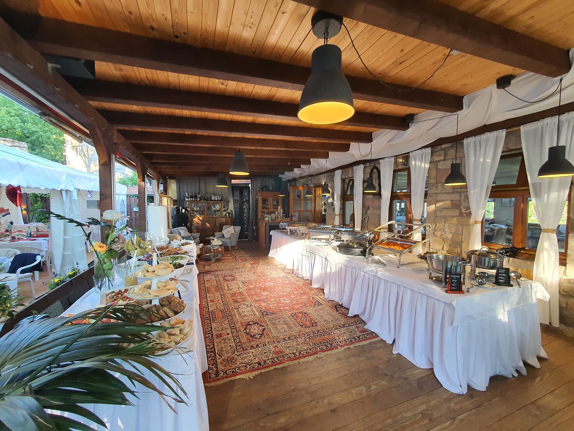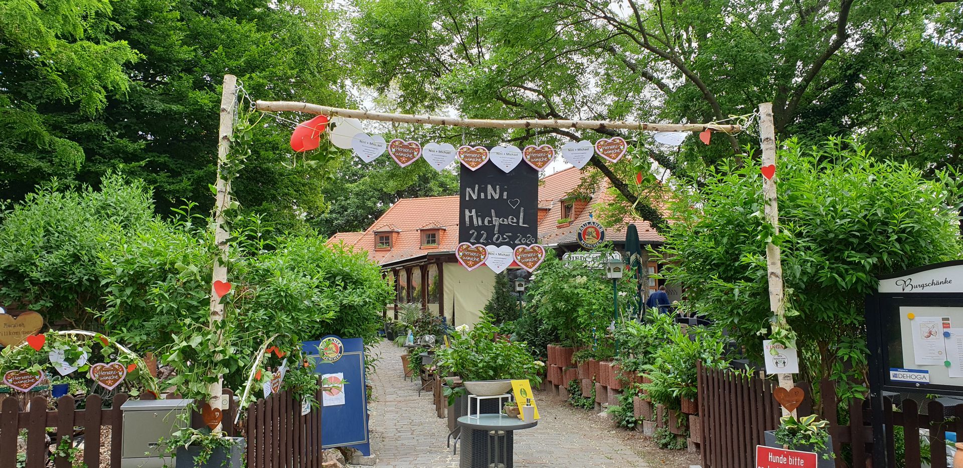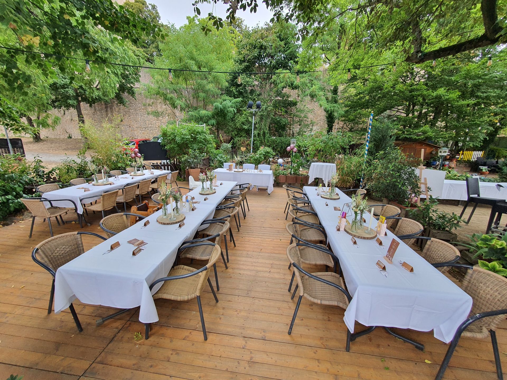 Die Burgschänke mit Terrasse, Biergarten und Wiese können individuell nach Ihren Wünschen genutzt werden. Er gibt genügend Platz für Show-Einlagen und auch der Platz für Band und Tanzfläche ist flexibel gestaltbar. Falls die Wetterbedingungen einmal nicht optimal sind, besteht die Möglichkeit durch ein Festzelt oder Pavillon(s) und auch mit Heizstrahlern die besten Bedingungen für Ihr großes Fest zu schaffen.