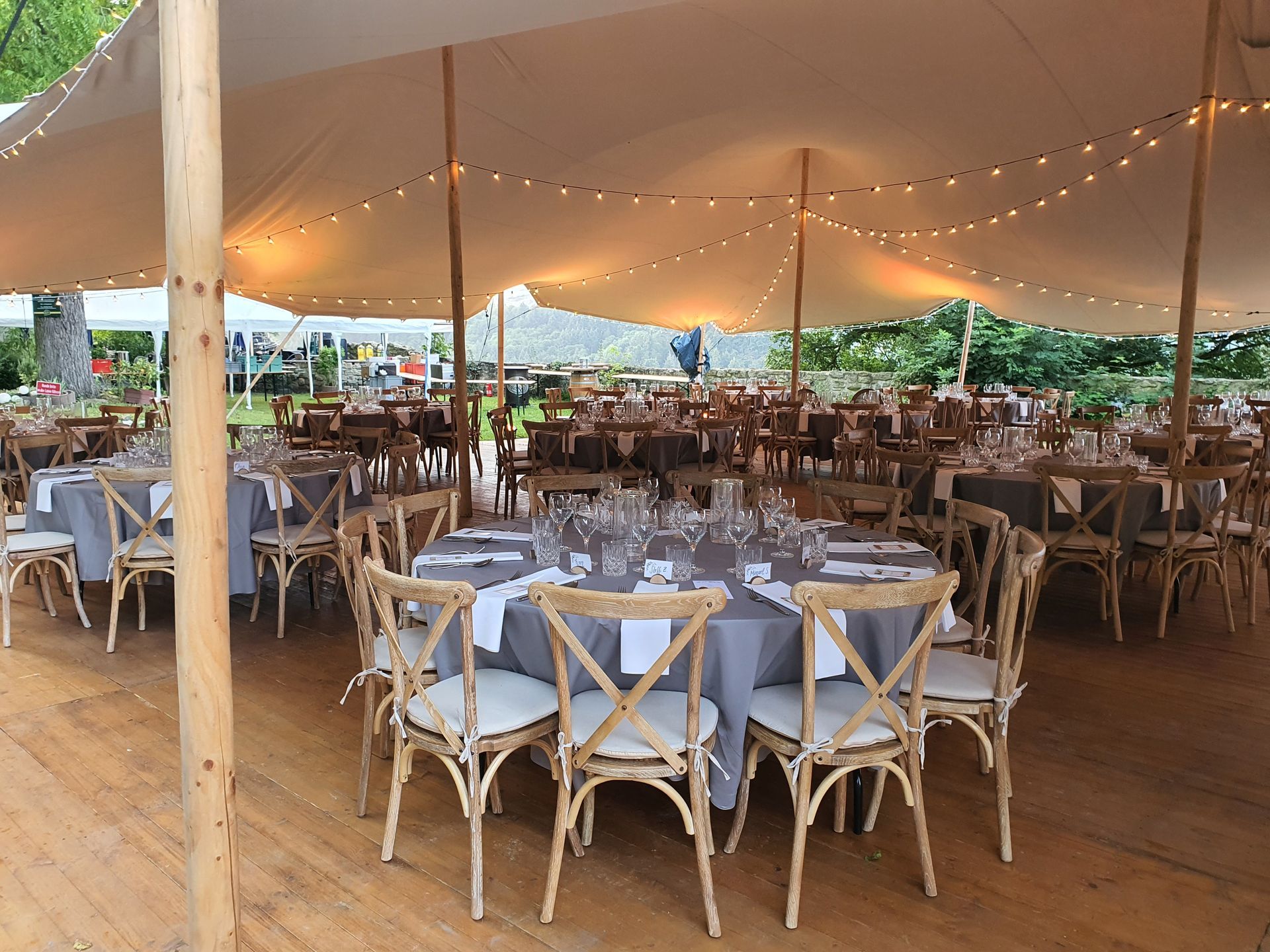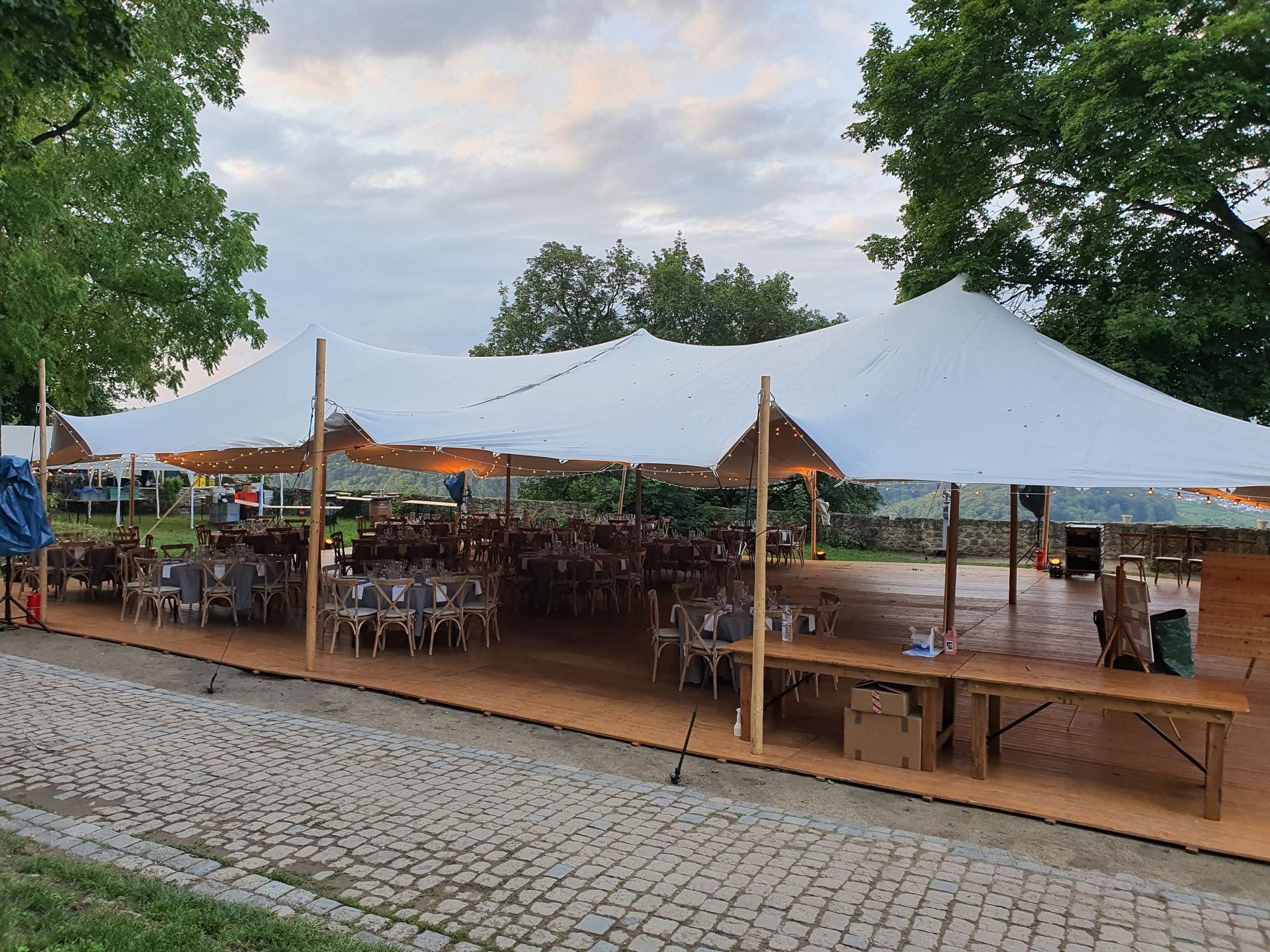 Da das Wetter ein nicht planbares Ereignis ist, raten wir bei größeren Feiern zu einem Zelt. Wir arbeiten in diesem Bereich seit 16 Jahren hervorragend mit der Firma Drescher zusammen.